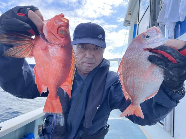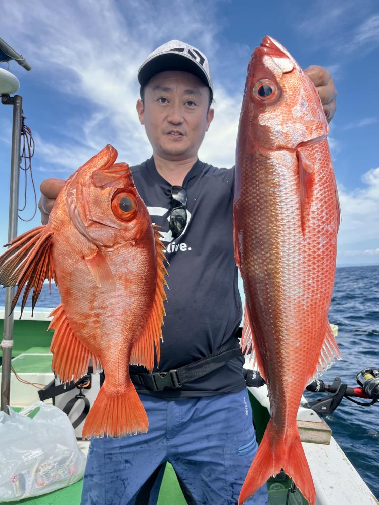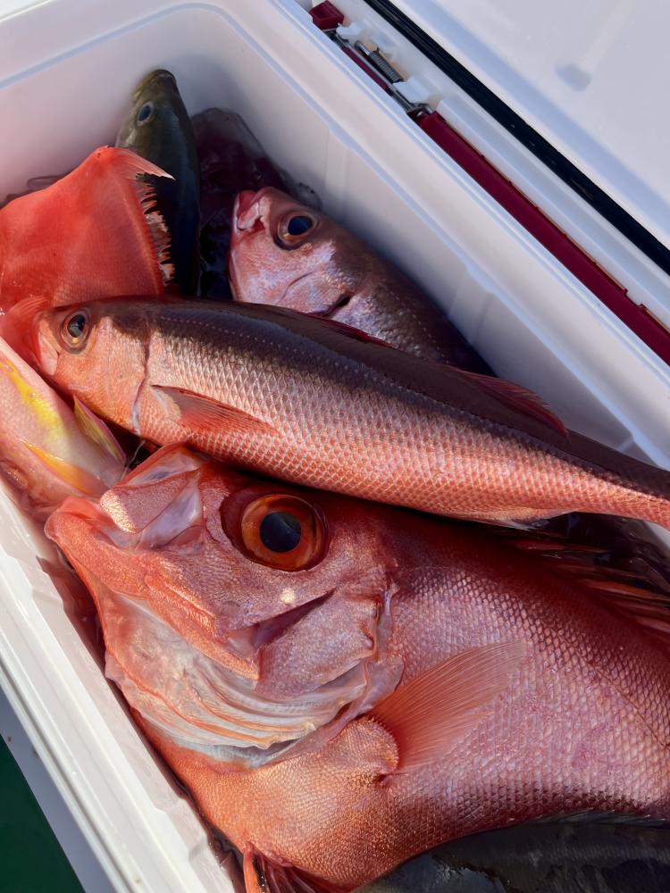 メダイ五目では メダイ5打数3安打! 水面バラシやハリス切れなども有り残念。オキアミエサ有利でした!ゲストにアカイサキ、オキメバル、キントキダイも登場⤴︎︎︎