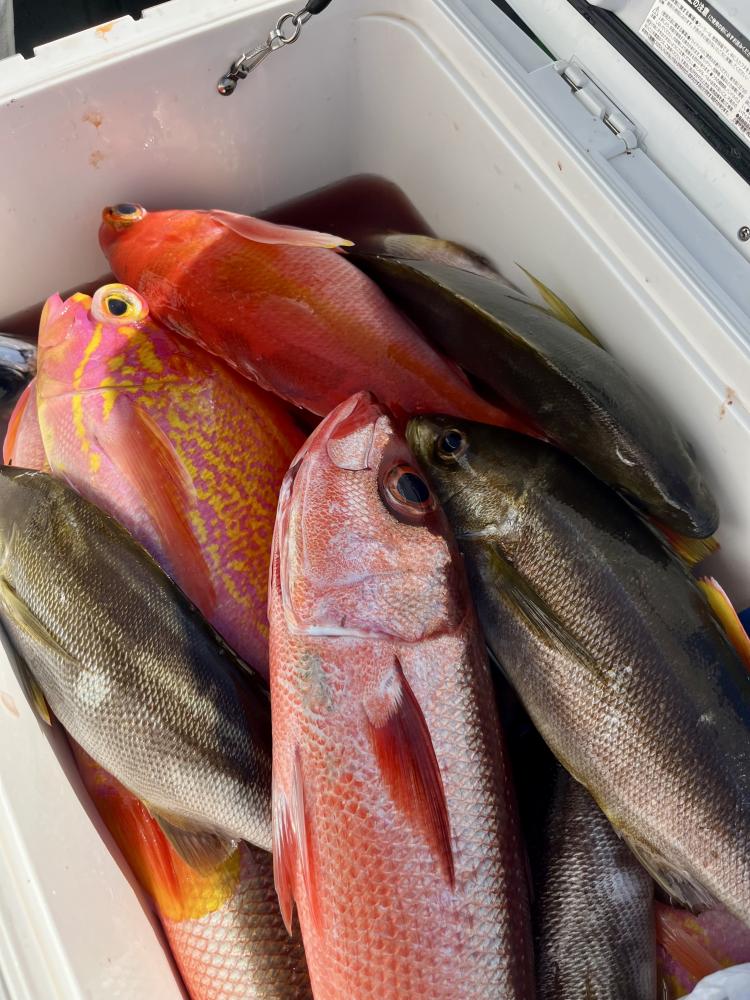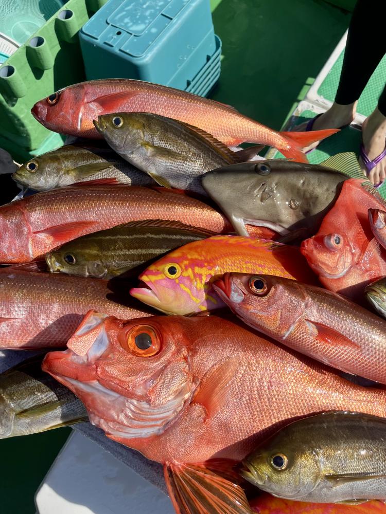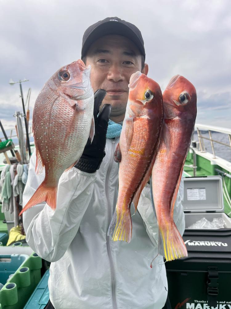 最後はアマダイ狙い!100m以深で良型に的を絞り〜最大40cm浮上成功◎(写真参照)他にキダイ多数混じりました!