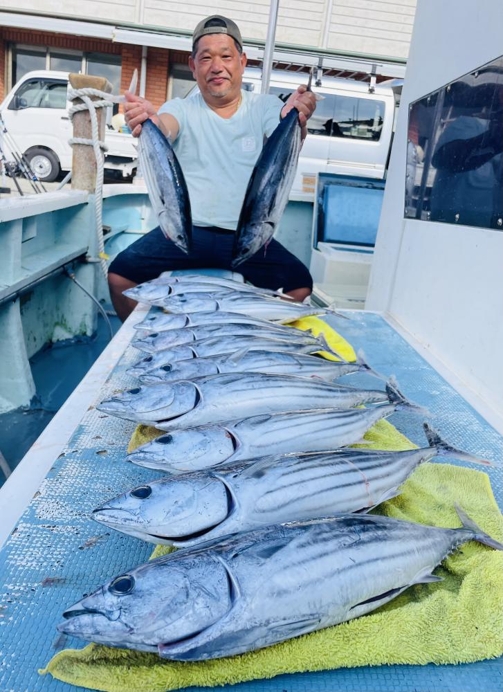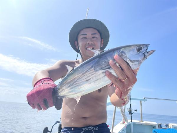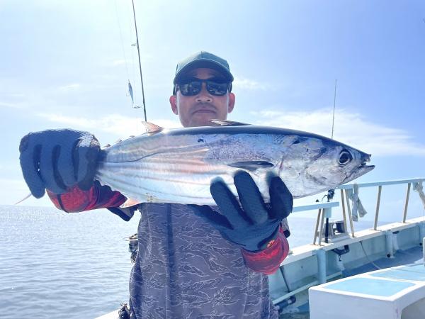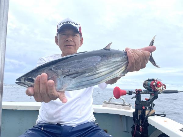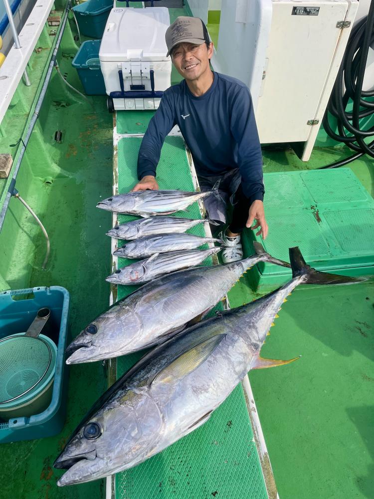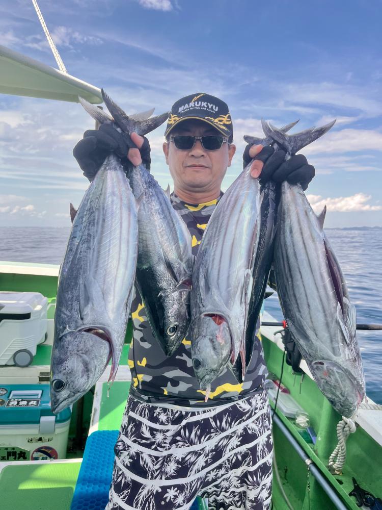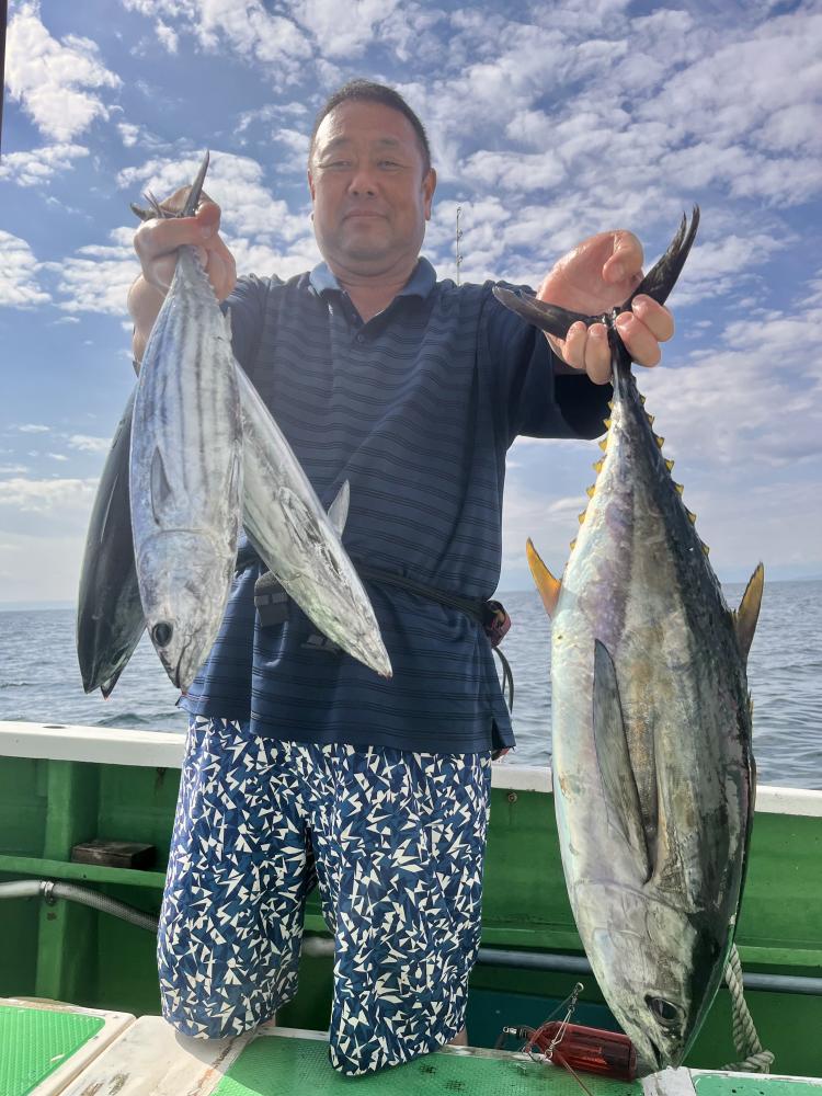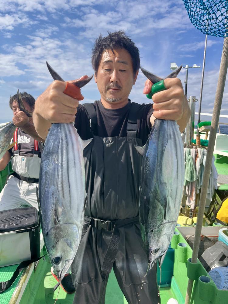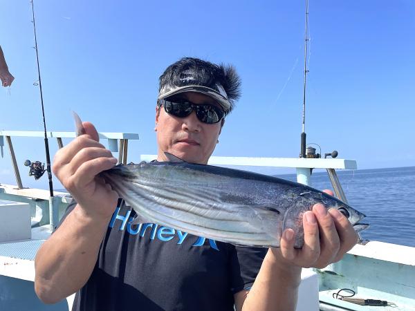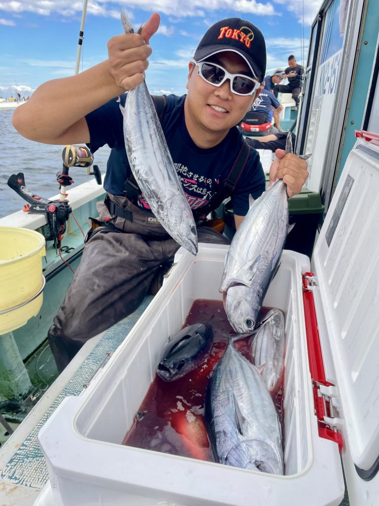台風通過直後で 朝こそ ナブラ浮き悪く クルージングでしたが、台風前とほぼ同じ海域で ナブラ浮上⤴ カツオ&マグロの混合ナブラ! 船団合流1投目から 良型カツオGET開始(๑•̀ •́)و✧ その後も動きの早いナブラを追っかけ 追釣成功〜◎ そのナブラは結局最後まで沈まず 追っかけ釣り続行!! 途中 エビングでマグロヒットも道糸切れ(PE5号)残念… コマセマグロもヒットありましたが ファーストランで針外れで バラシㅠㅠ 他の船でもエビングマグロ・コマセマグロGET船ありました! 終盤 再びカツオ追加で トップはM様【4打数4安打】バラシ無しはさすがでした!!