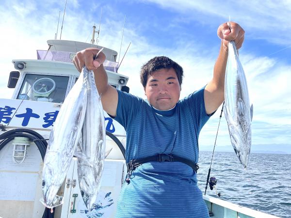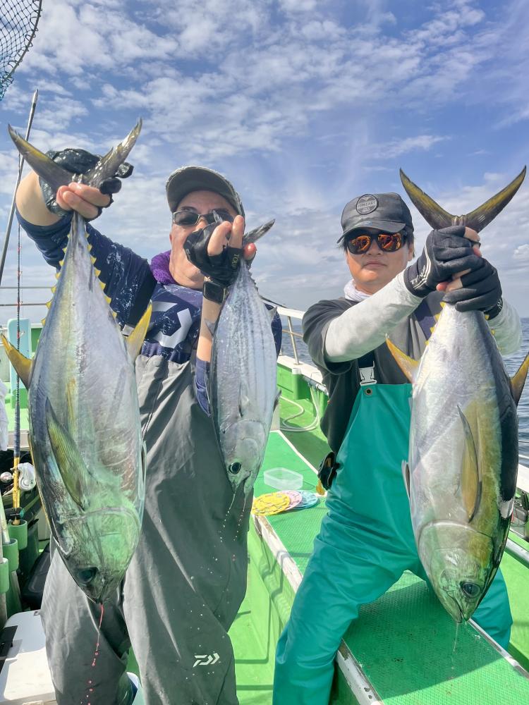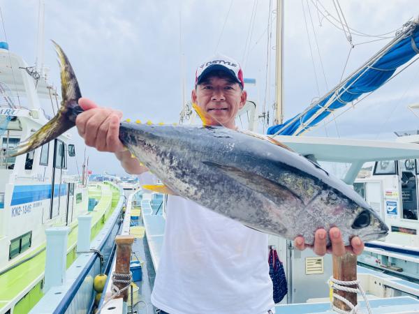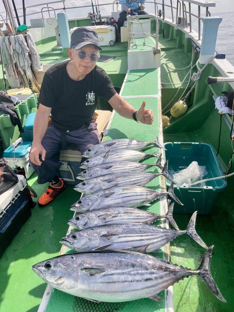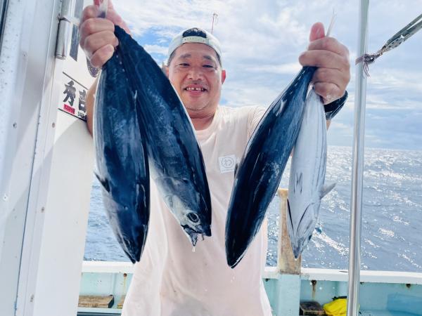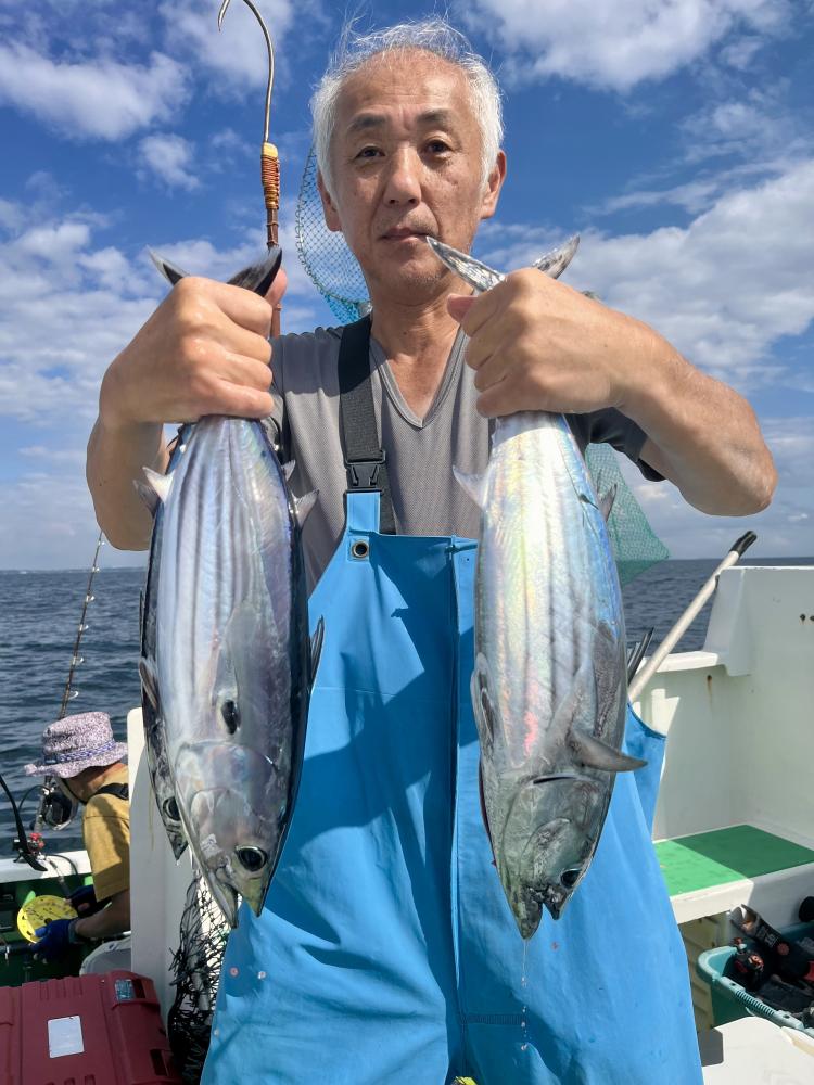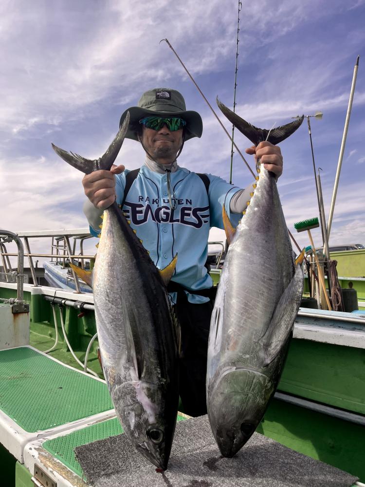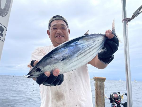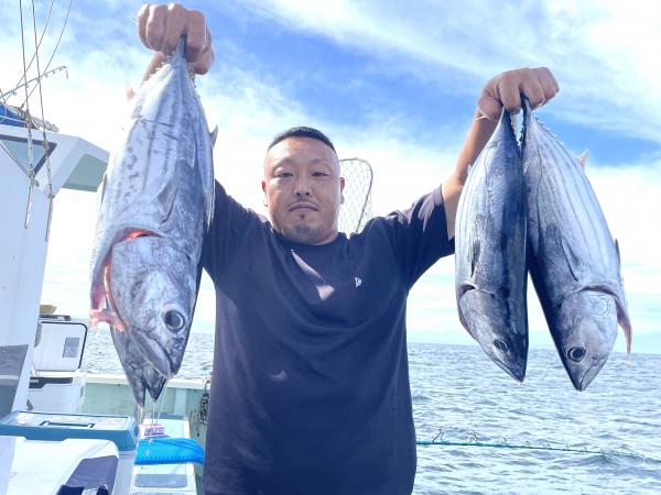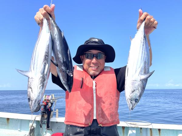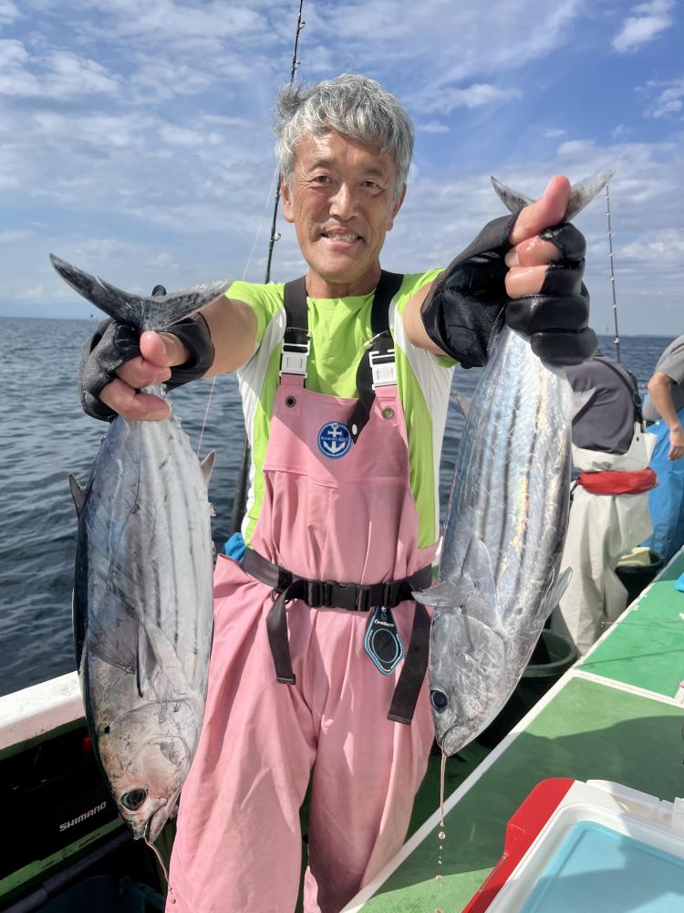 台風通過直後で 朝こそ ナブラ浮き悪く クルージングでしたが、台風前とほぼ同じ海域で ナブラ浮上⤴ カツオ&マグロの混合ナブラ! 船団合流1投目から 良型カツオGET開始(๑•̀ •́)و✧ その後も動きの早いナブラを追っかけ 追釣成功〜◎ そのナブラは結局最後まで沈まず 追っかけ釣り続行!! 途中 エビングでマグロヒットも道糸切れ(PE5号)残念… コマセマグロもヒットありましたが ファーストランで針外れで バラシㅠㅠ 他の船でもエビングマグロ・コマセマグロGET船ありました! 終盤 再びカツオ追加で トップはM様【4打数4安打】バラシ無しはさすがでした!!