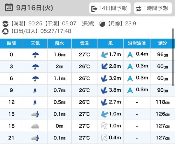 ★明後日9(火)~しばらくナギ予報⭕️