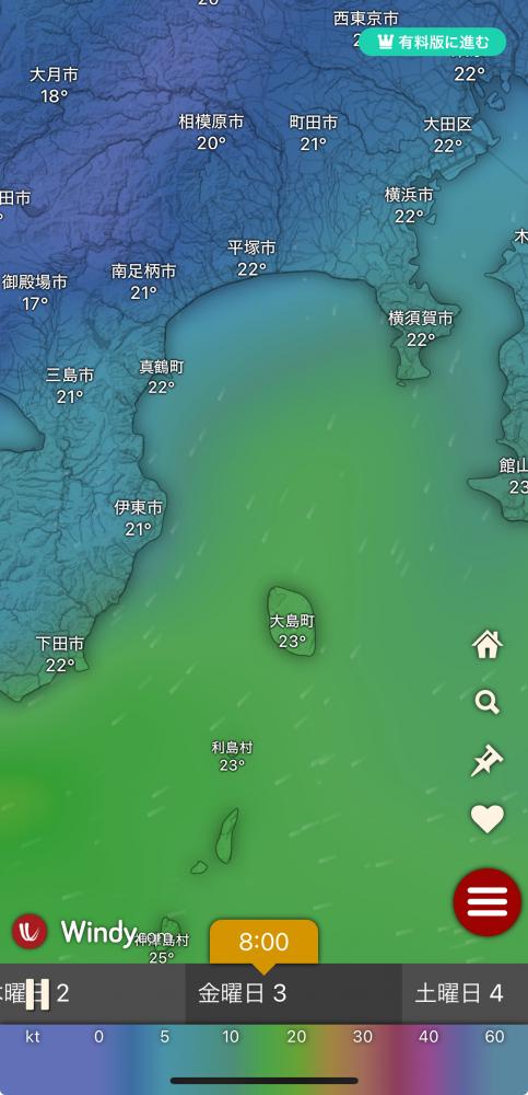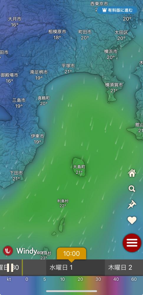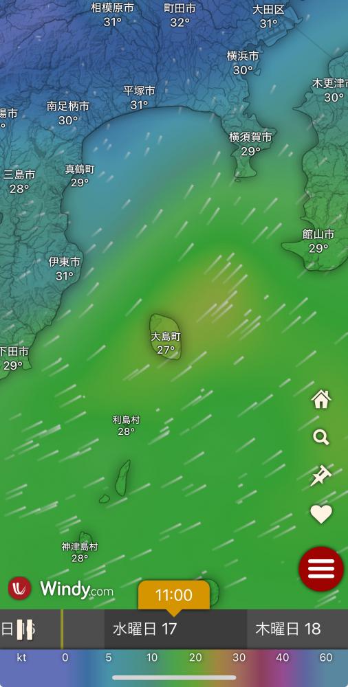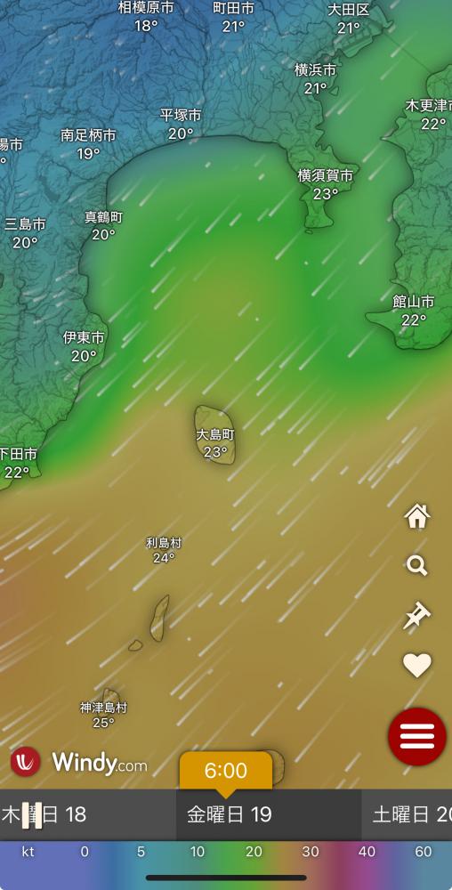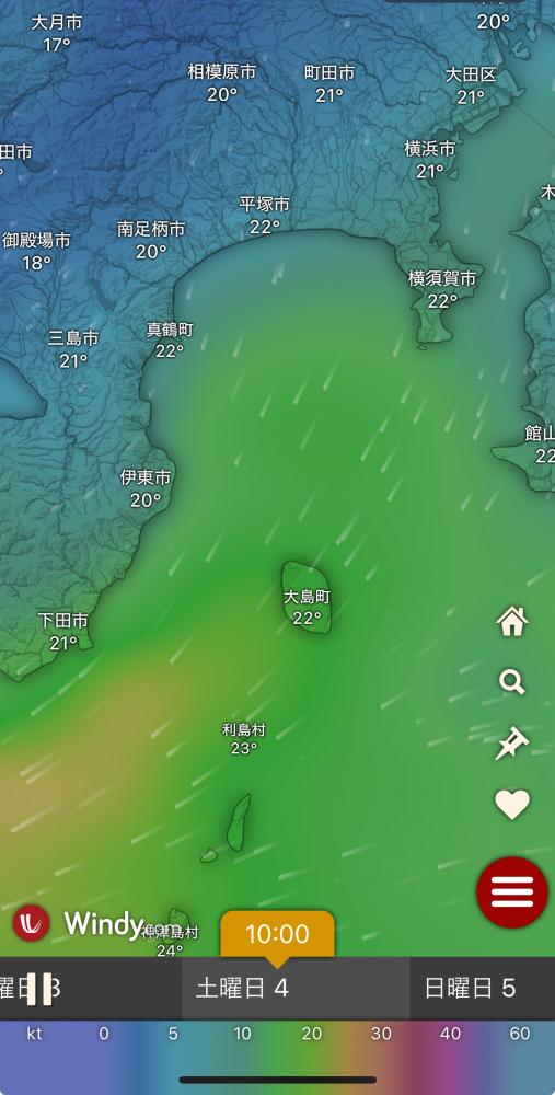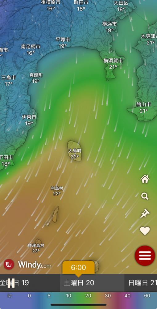 風向きと強さ:南 弱い→南西 ほどほど