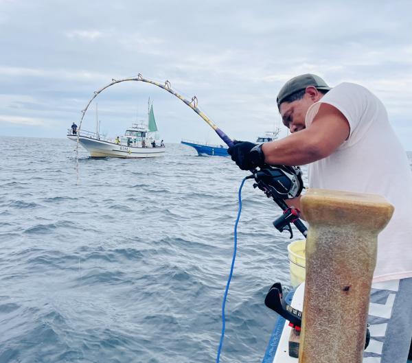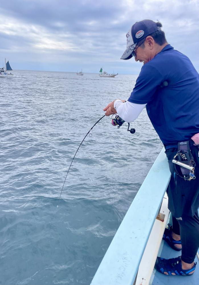最後は再び流しマグロ狙いで再びリーチ連発もタナが深くなり活性渋く残念でした。。 近くの流しマグロ船では 大型マグロGETシーンも見られいよいよ流しマグロのシーズン到来ですね♪