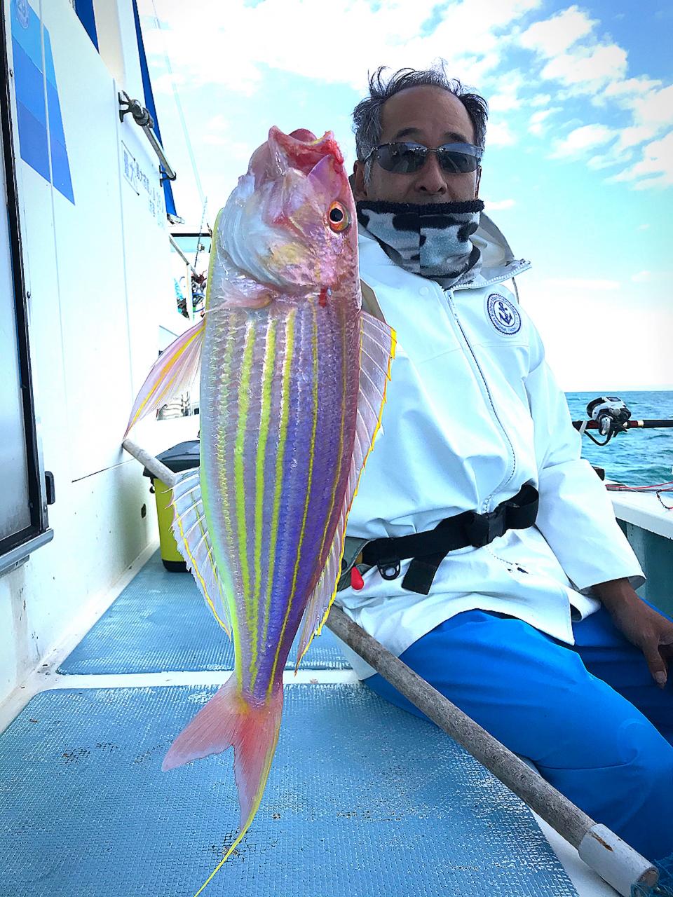 アマダイはシケあとで海上ウネリ残り、タナどり苦戦も乗船者皆様アマダイキャッチ成功〜!ゲストに良型ホウボウ、イトヨリ、オキメバル等も!