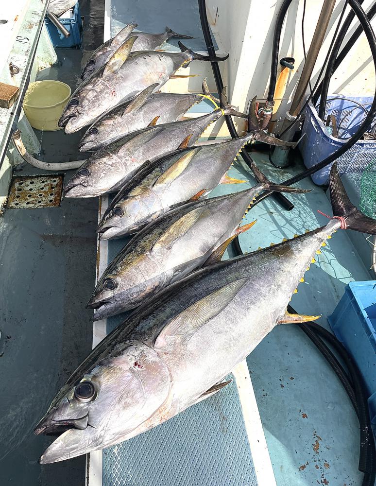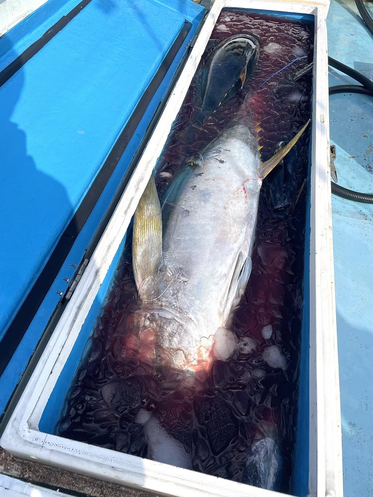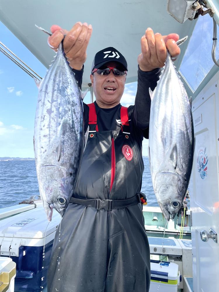 不規則に泳ぐ群れを先回りで何とかヒットに持ち込み コマセマグロ【4打数2安打】最大21.0kg! ルアーマグロ【10打数5安打】最大20.0kg トップ2本!!