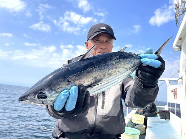 前半 風が吹き海上波立ち近場でカツオGET♪