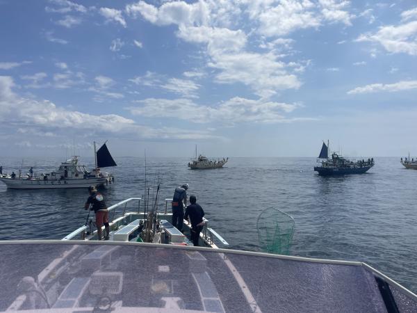 最後は再び流しマグロ狙いで再びリーチ連発もタナが深くなり活性渋く残念でした。。 近くの流しマグロ船では 大型マグロGETシーンも見られいよいよ流しマグロのシーズン到来ですね♪