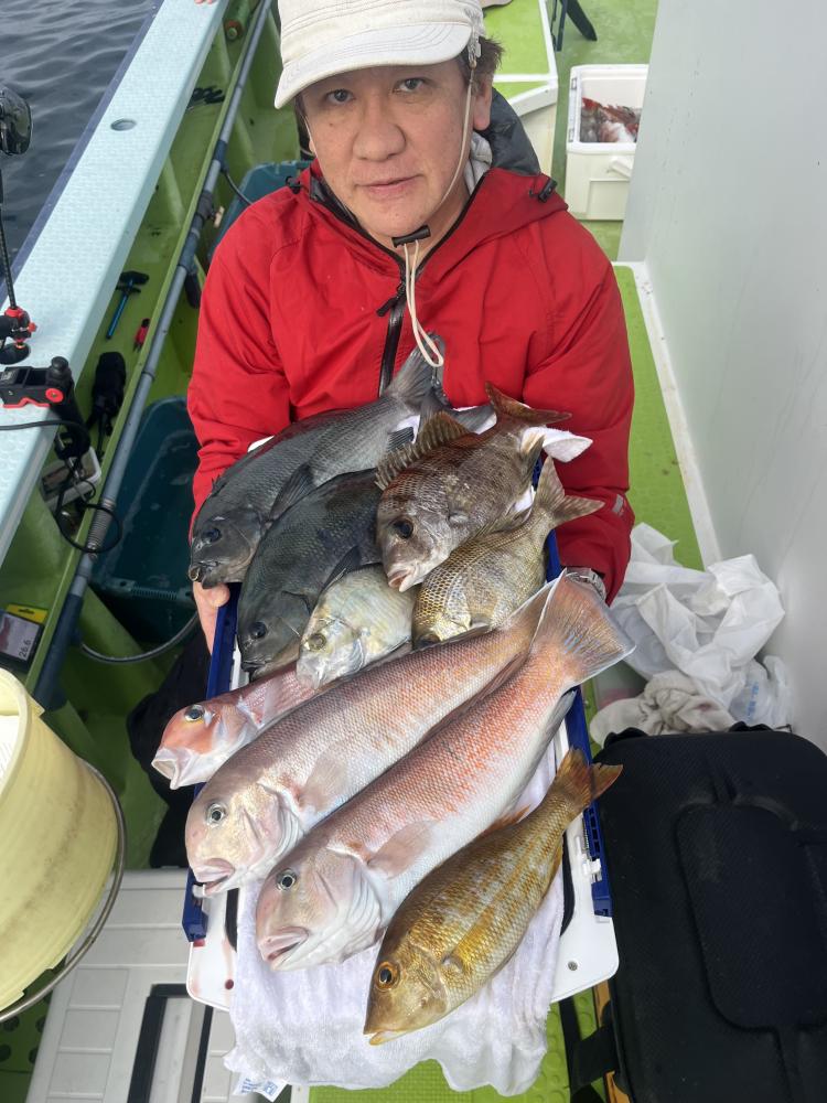 マダイ、メジナ、イナダ、イサキ、フエフキ、メイチダイ、タカノハダイ、ニザダイ、カワハギ、紅白アマダイ、イトヨリ、カイワリ、ホウボウ、アオハタと魚種多彩に楽しめました!