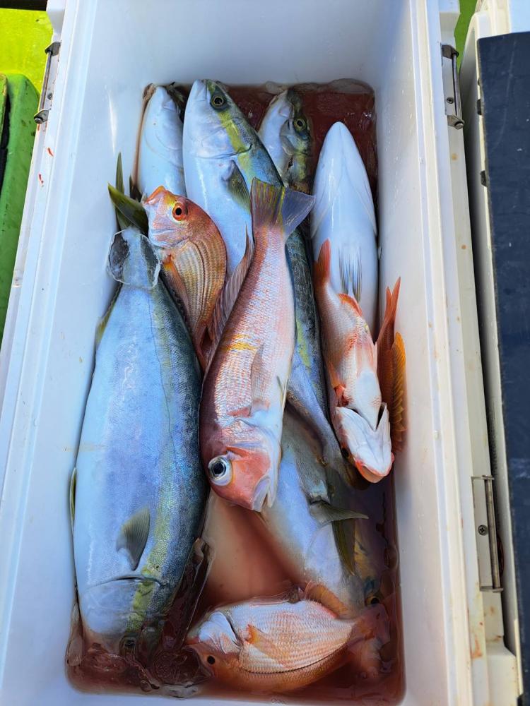 今日はイナダ主体にマダイ、ハナダイ、アマダイ、キダイなどでお土産になり一日楽しめました。